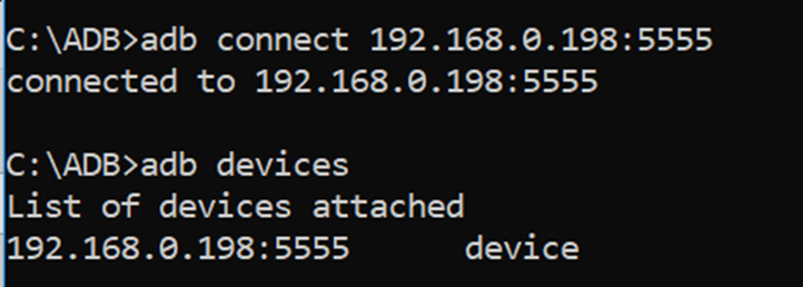 adb -s 192.168.0.198:5555 logcat > this will show the logging in the cmd window.