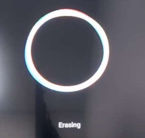 If after 10 minutes you haven't seen the Welcome screen, power off the screen from the main, then power the screen on again and you should see the Android screen Erasing screen after about 30s.