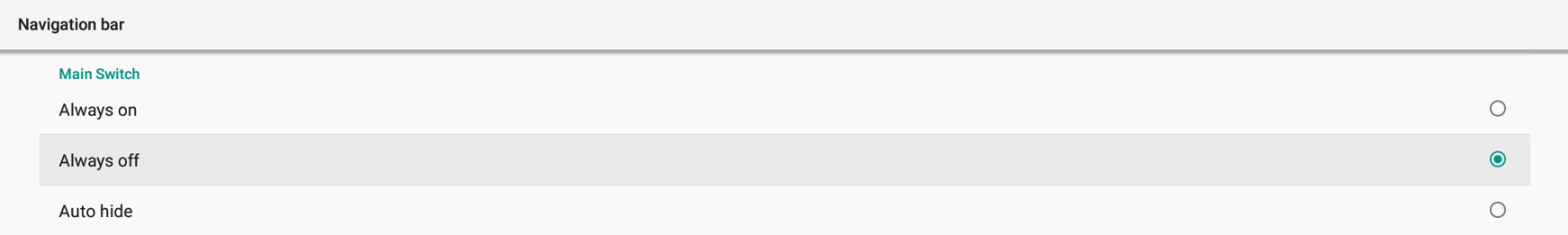 - Change the setting to Always Off (Note: Auto hide setting will hide the Navigation bar after 10 seconds)