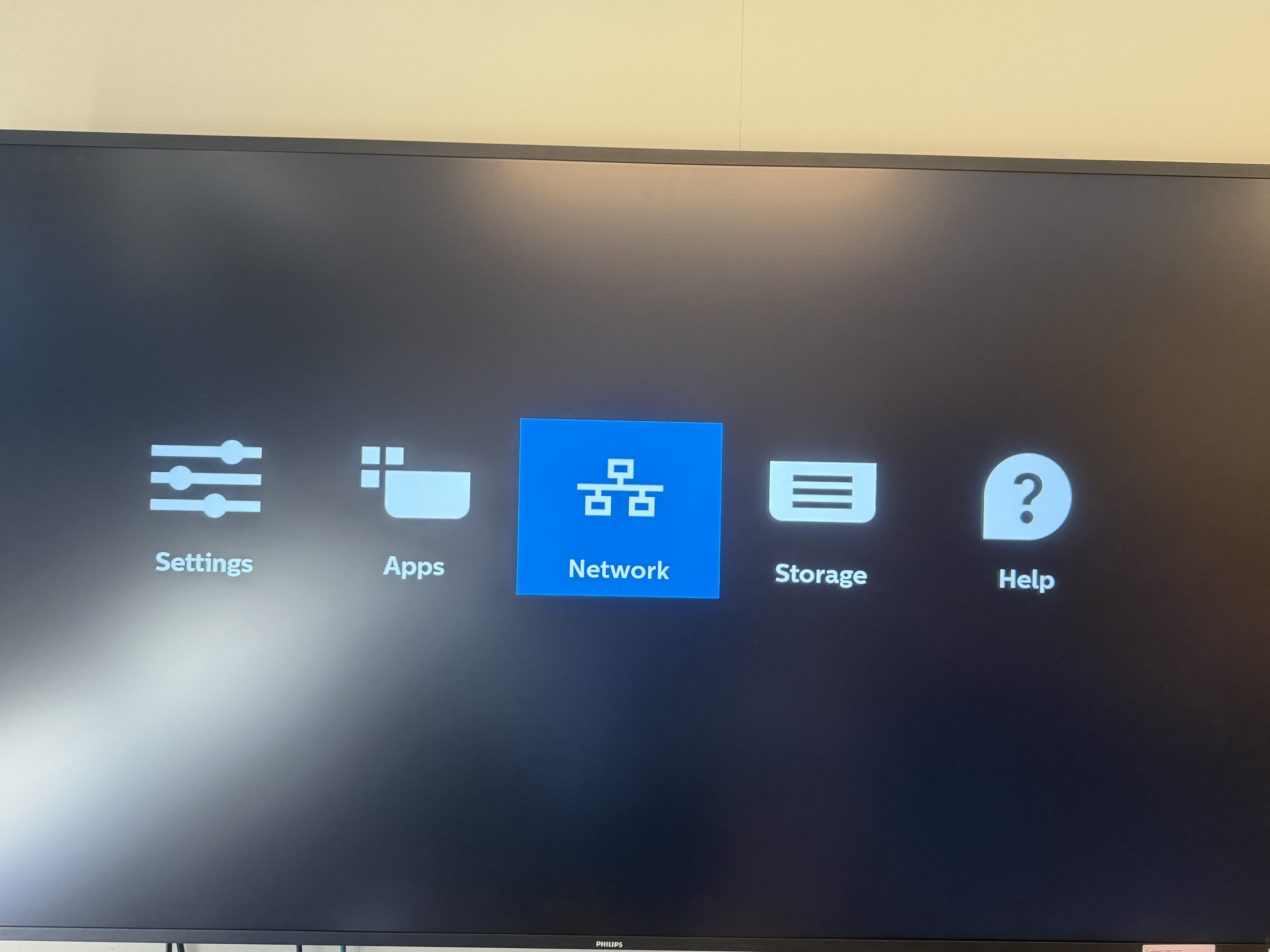 Press Home +1888 within 2-3 seconds from remote which will take to admin mode ( It will look like below, select Network)
