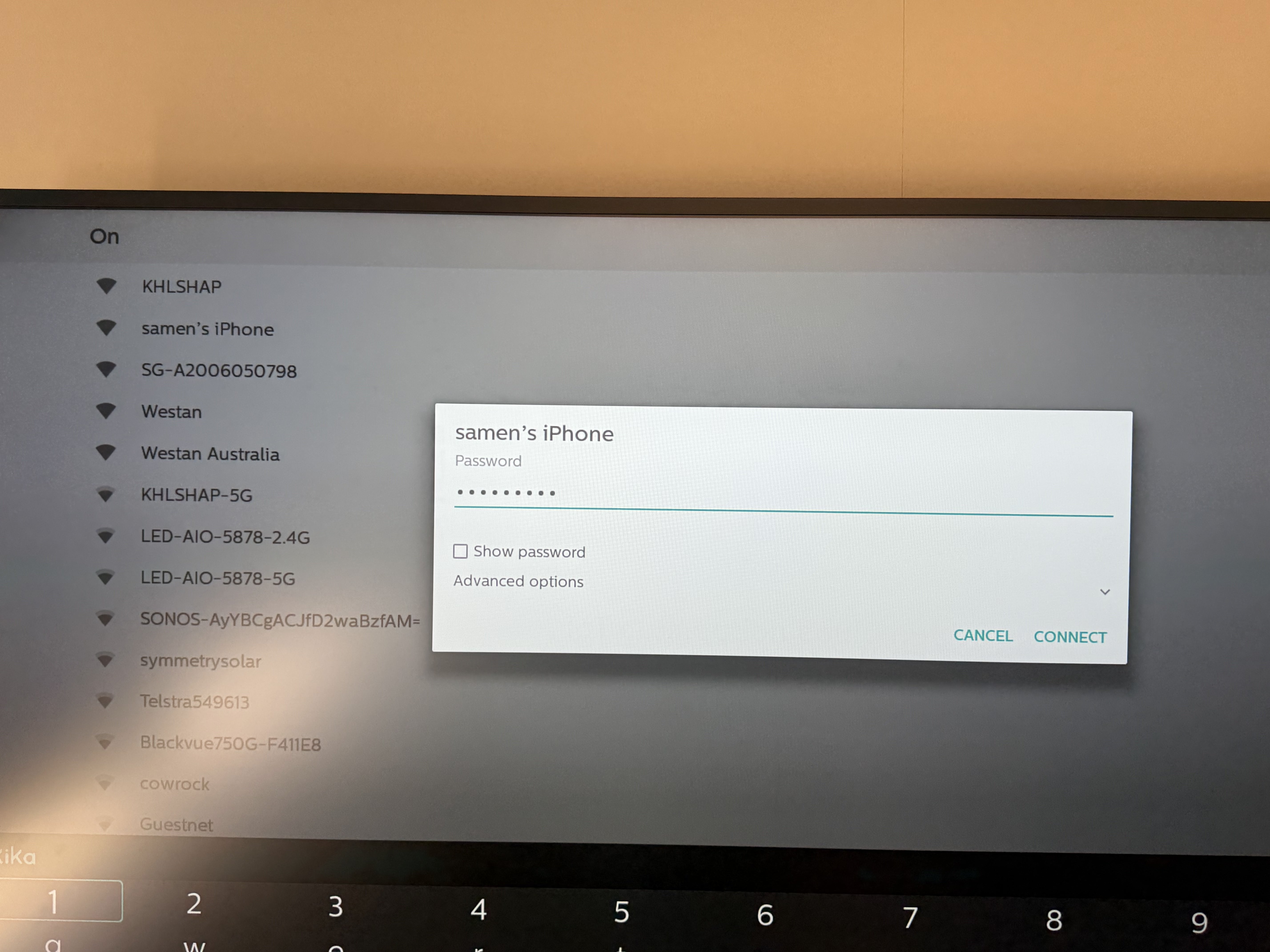 Select ****** Wifi and Password: *****and it will connect to wifi (It should be given from Liberty Oil, for security reason, I am not writing wifi SSID and Password in here)