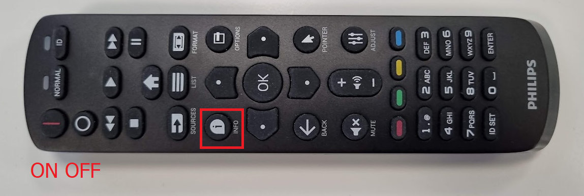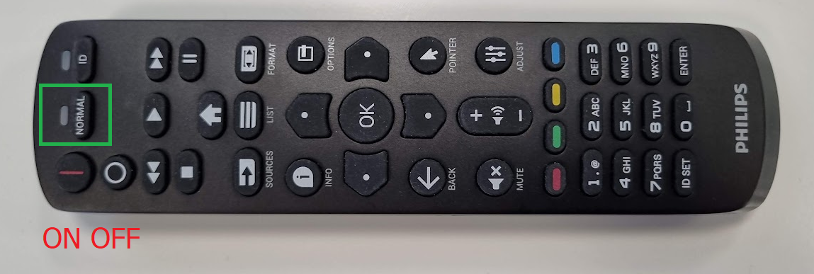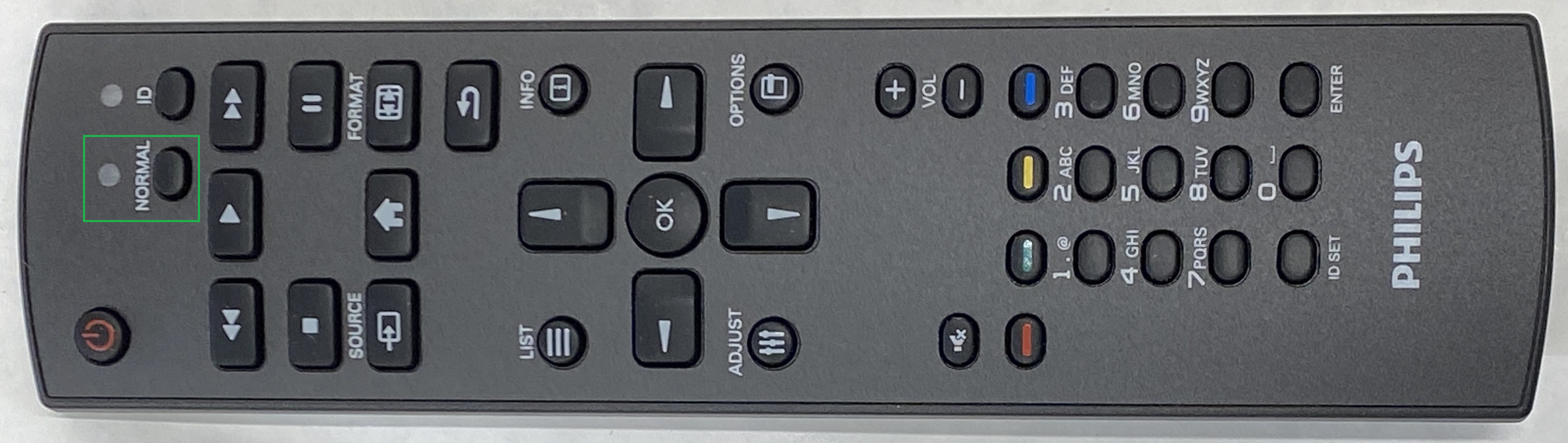 The remote control has 2 modes, Normal (green LED at the top right of the remote) and ID (red LED at the top right of the remote)