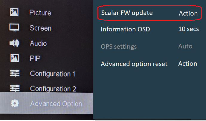 “advanced option”, on the right scroll down and select “Scalar FW Update”