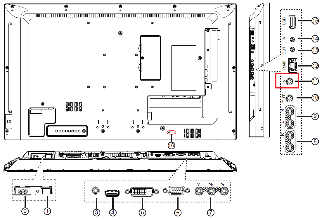 3. There's an IR cable (3.5mm cable) in the IR In interface on the screen