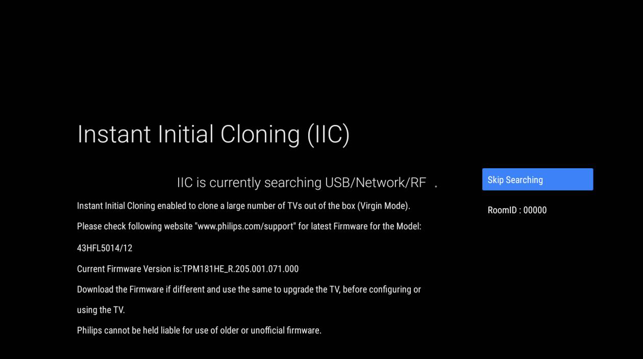 4. TV will boot to the IIC screen (Instant Initial Cloning).