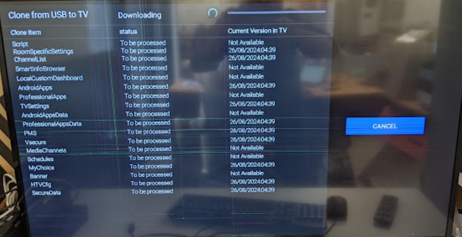 6. Once the firmware update is completed, the TV will automatically upload the clone data.