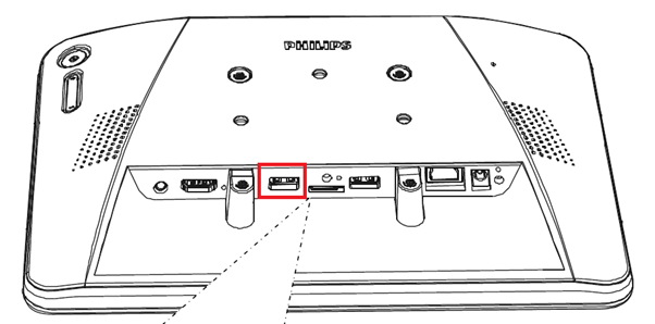 Copy the .apk file to the root directory of the USB Drive, insert USB drive to the USB port on the device: