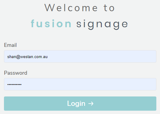 If you don't know your Fusion Signage account, please contact Westan technical team on +61 3 9541 8888 or drop us an email at