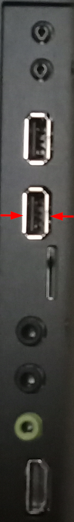 Insert USB drive to the bottom USB port on the side I/O panel: