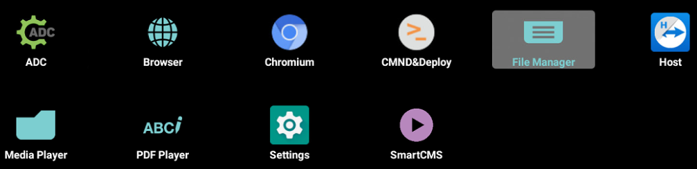- Select the Fusion Signage .apk file and press OK ⇾ select Open and press OK ⇾ Install