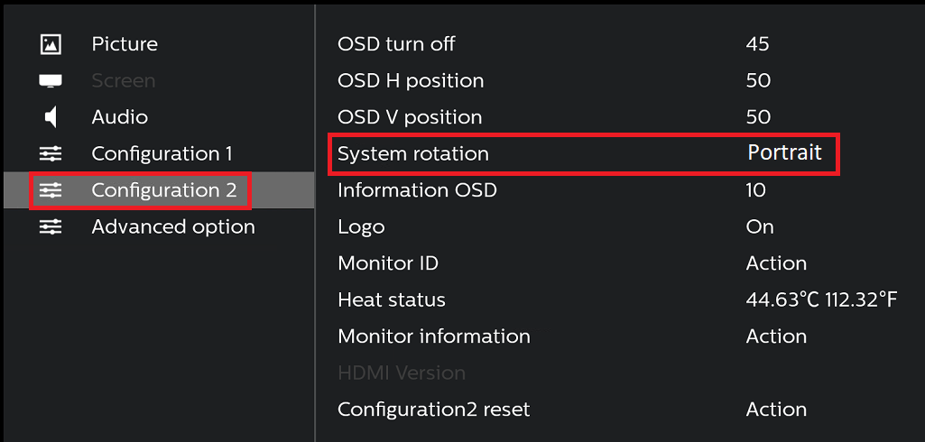 Home ⇾ Configuration 2⇾ System Rotation⇾ Action ⇾ Portrait