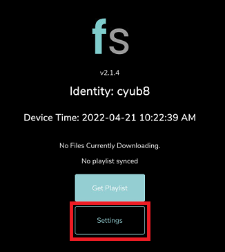 If the Identity value is blank, that means that Fusion Signage App can't reach the cloud server. Please confirm that your network connection is working and can access the internet.