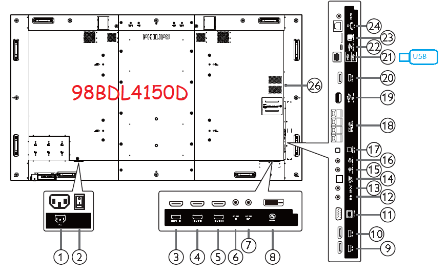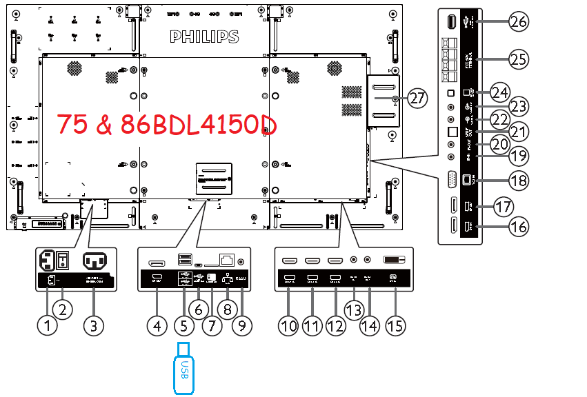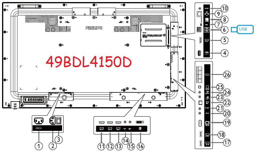 There are 2 USB ports on the xxBDL4050D, only one is used to connect USB Drive, the other one is only for Power over USB.