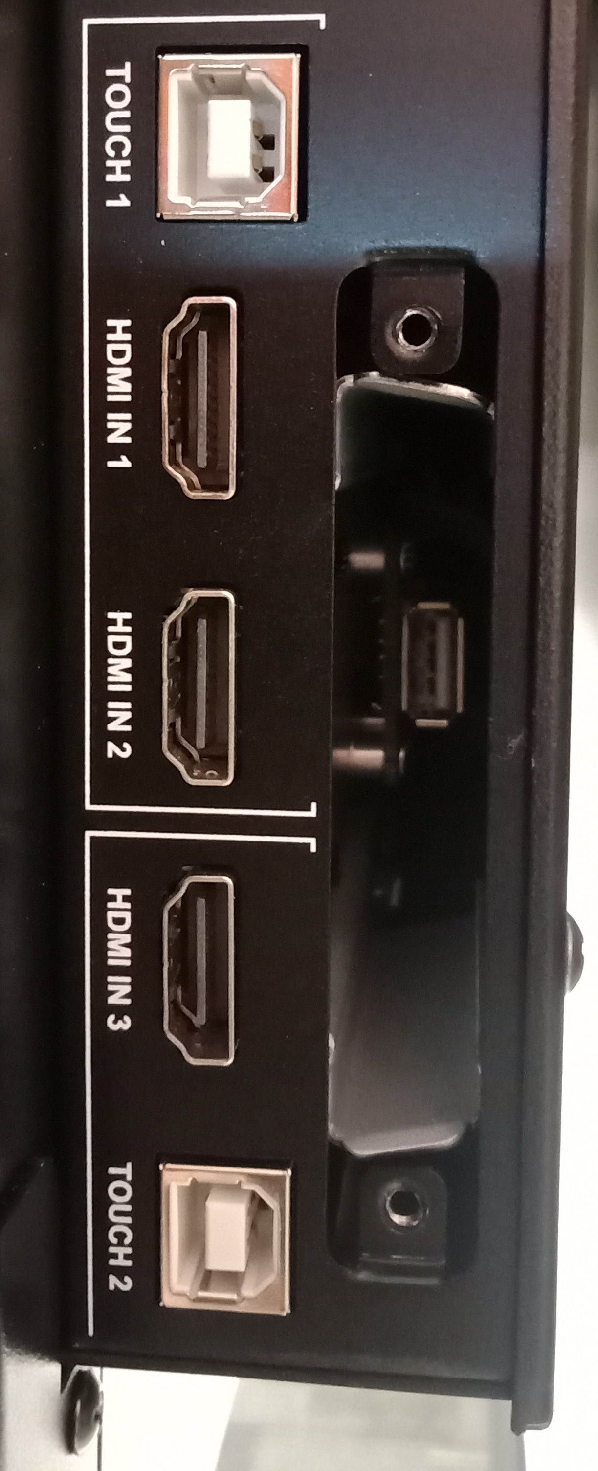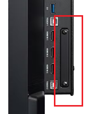 - Plug the USB drive to the USB port (next to the LAN port) on the display.
