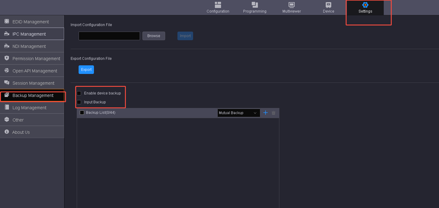 This issue is usually caused by the Backup Management's Enable device backup and Input Backup being ticked