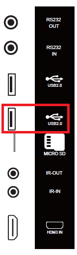 4. Insert the USB Drive into the USB port on the side I/O port of the screen.
