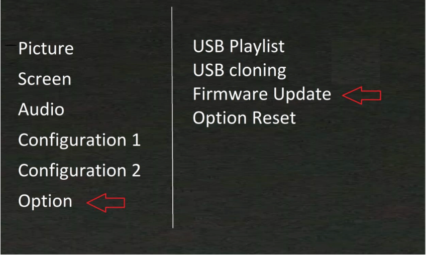 On the right, select "Firmware update", then select "yes" with the arrow keys on the remote control, FW will update by itself.