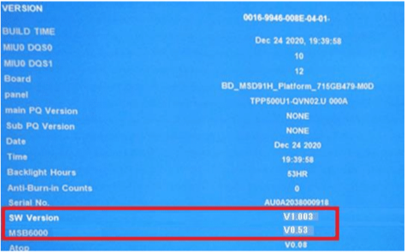 Press the following remote control button sequence, INFO, 7, 7 , to check the Android FW Version Model Latest Version Link BDL3650Q FB01.20 https://westanonline.sharepoint.com/:f:/s/Support/El0G1ioomidPqy8LcnZiBAYBd5CmemYELt1WDOVBjsDLxw BDL3650QE ...