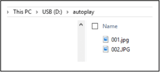 USB Autoplay With the USB Autoplay feature, the screen automatically plays image/video files when the screen is powered on or when the USB drive is re-inserted into the screen. To use this feature, the photo/video files need to be stored in certain ...