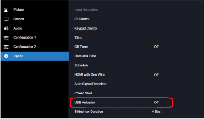 There are 2 ways to set up USB Autoplay on your screen. Autoplay & Playlist: