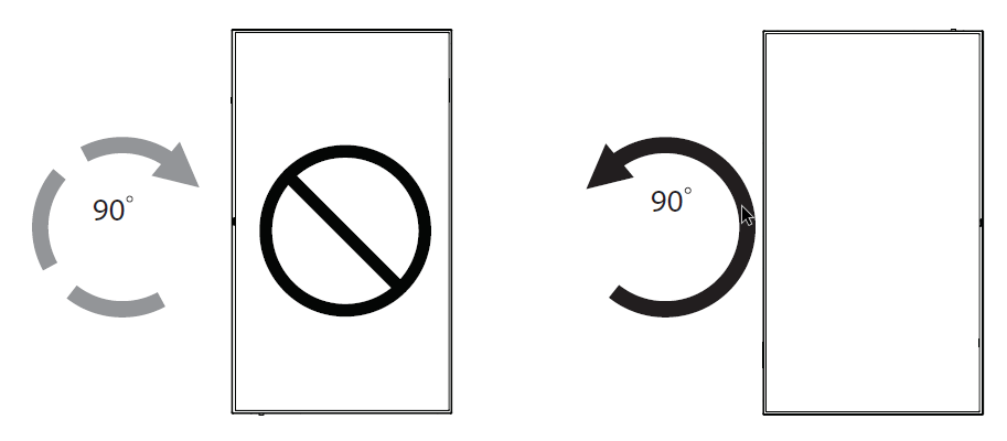 Portrait Mounting This display can be installed in portrait position. 1. If the table stand is attached, remove it first. 2. Rotate the display counter-clockwise by 90°. The “ ” logo should be on the RIGHT side when facing the display. 3. Set the ...