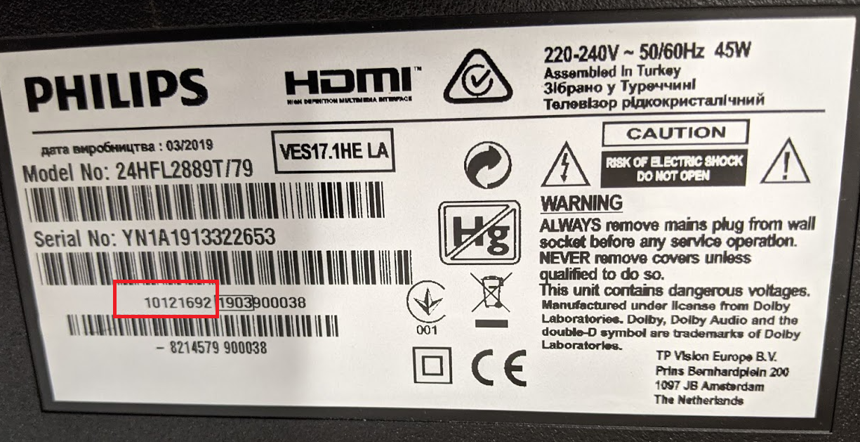 On the TV sticker you will see a "production code", all digits starting with "10121xxx".