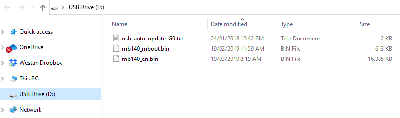 1. First, make sure you have all these files; "mb140.bin", "usb_auto_update_G9.txt".